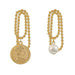 These asymmetrical earrings feature gold chain links with a coin pendant on one side and a pearl drop charm on the other for a statement look 💛