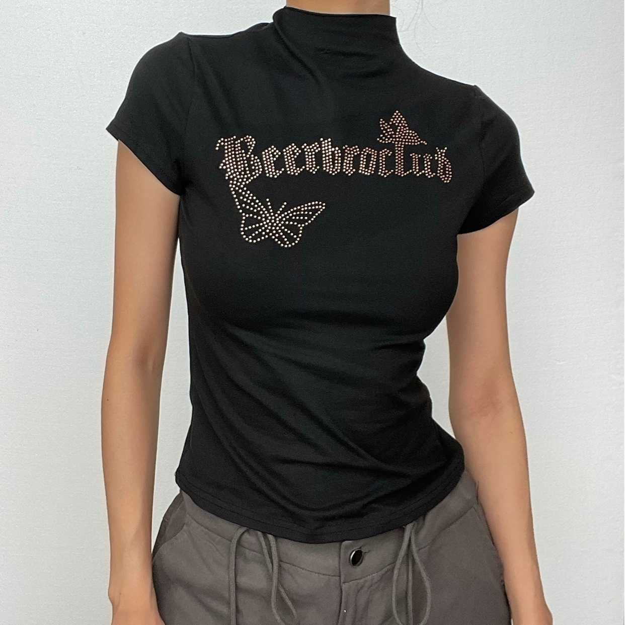 Beaded high neck short sleeve top