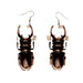Aesthetic earrings with a beetle design. showcasing intricate details in a dark. polished finish