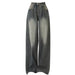 Wide-leg jeans in a faded black wash. featuring a relaxed fit and distressed detailing. Perfect for a casual. grunge-inspired style