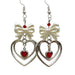 Romantic drop earrings combining a silver heart design with red gemstone accents and coquette white bows 🎀
