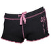 Comfortable coquette black shorts with pink stitching and a decorative bow. Ribbed fabric and drawstring waist ensure a perfect fit