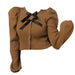 This elegant cardigan top features a button-up closure in the front. ribbed construction. and is adorned with two bows that add a touch of French aesthetics and charm to your outfit