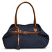 This aesthetic denim bag features a stylish belted detail and sturdy contrast handles