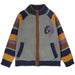 Zip-up sweater with colorful striped sleeves and retro indie kid vibes. Features a soft knit fabric and front zipper for casual wear