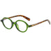 These retro-inspired round glasses feature a bold green frame paired with stylish leopard temples