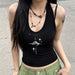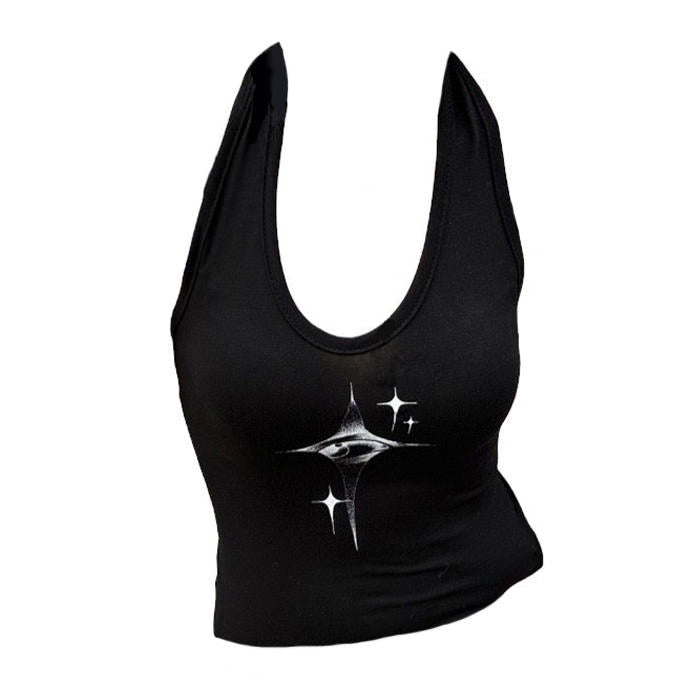 This Grunge Aesthetic black halter top features an eye print. adding a touch of intrigue to your outfit