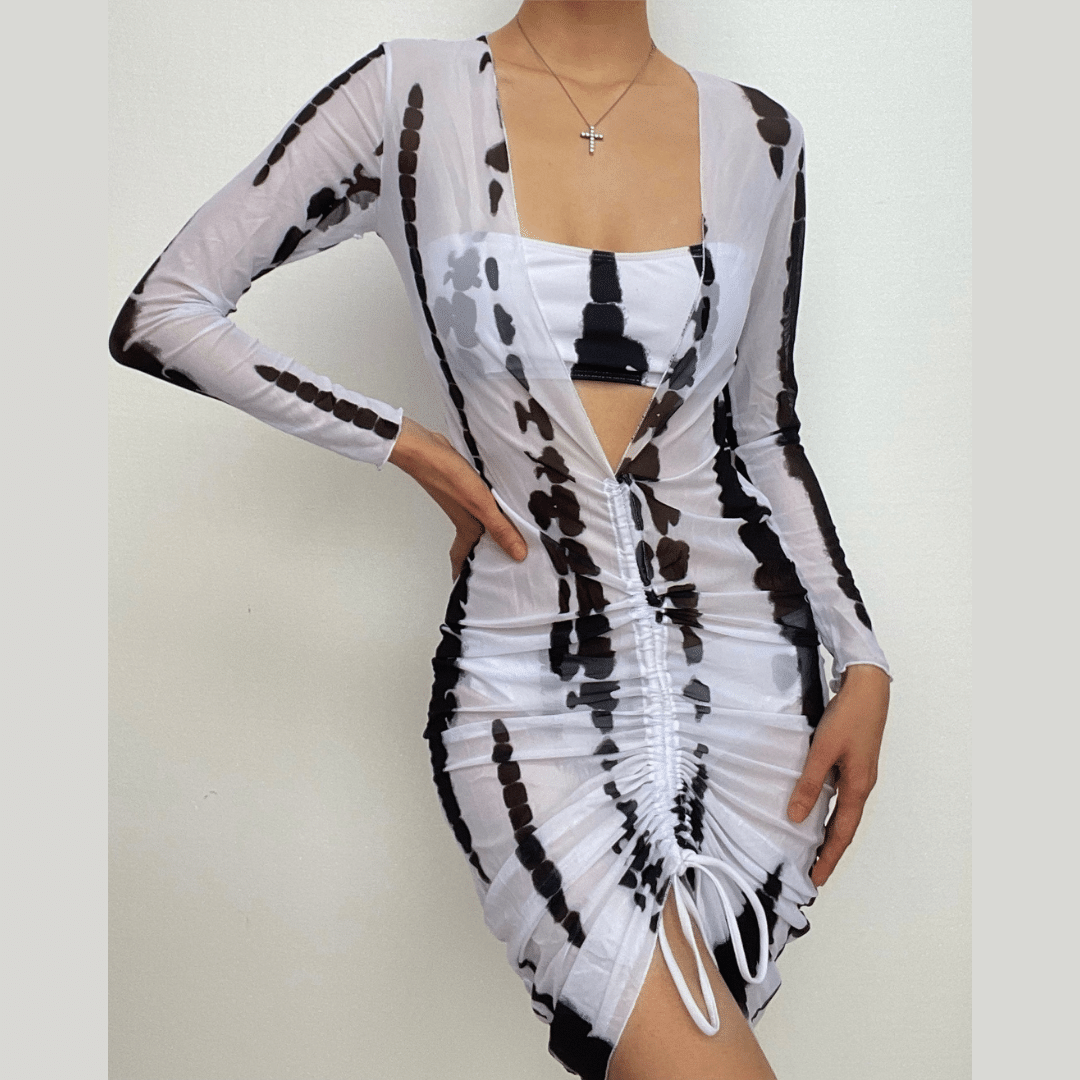 Contrast Mesh tube top ruched midi dress 3 piece swimwear