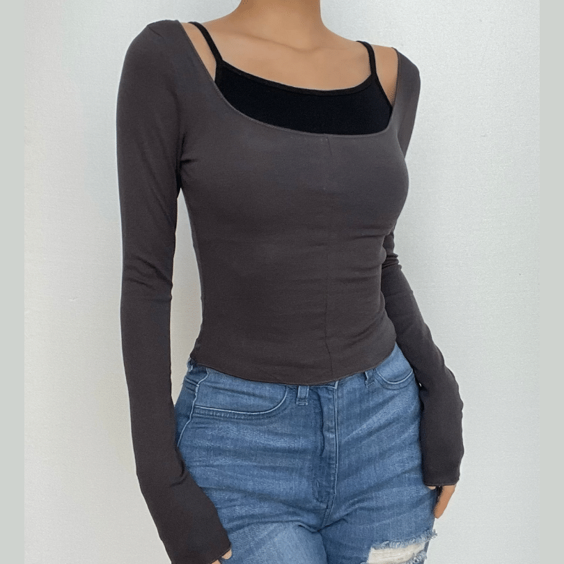 Contrast patchwork long sleeve round neck top
