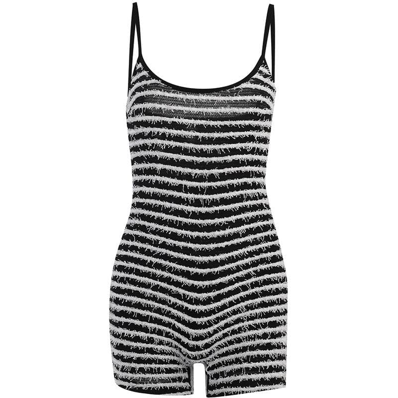 Contrast striped fluffy backless cami romper