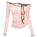 This coquette-inspired off-shoulder top features a delicate tie detail and soft pink fabric