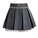 This coquette-inspired pleated skirt features dainty heart patterns. delicate lace trim. and an oversized bow back detail
