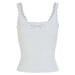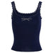 This cute tank top featuring delicate lace trim and a sparkling rhinestone bow