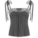 This cute top features adjustable tie straps. delicate lace detailing. and soft pleats for a flattering silhouette