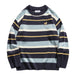 This knit sweater with a rounded neckline and a striped print features a cute croissant embroidery on the front