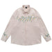 This Earthcore Aesthetic shirt features delicate floral embroidery on soft corduroy fabric