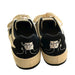 These cute black & white sneakers have a vegan leather upper with an aesthetic face outline embroidery design. a low ankle rise and a lace up in front /p>