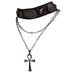 This gothic layered choker necklace features an antique cross pendant and metal detailing