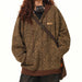 This aesthetic oversized hoodie features a bold leopard print. full zip closure. and spacious front pockets. Ribbed cuffs and hem offer a snug fit. perfect for layering