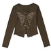 Introducing our Front Lace Butterfly Aesthetic Top! This top features delicate front lace detailing and a beautiful butterfly design that adds a touch of whimsy to any outfit. The front lacing is versatile tighten it for a casual look. or loosen it up for a bold Y2k outfit