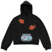 This aesthetic hoodie features playful red fish prints and a bowl graphic on the front. Designed with a kangaroo pocket and ribbed cuffs