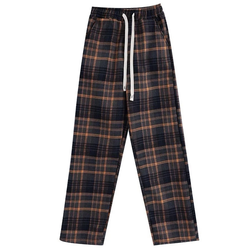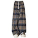 This grandma aesthetic pant features a relaxed. wide-leg fit with a classic plaid pattern. combining a high waist and drawstring for a comfortable vintage outfit