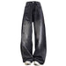 These Black Grunge Aesthetic Jeans feature a wide-leg fit. front pocket details. and cat prints on both the front and back