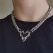 Make a statement with our Grunge Heart Chain Necklace. Featuring a flamin' heart-shaped pendant and a big silver-tone chain. this necklace is perfect for a grunge aesthetic outfit