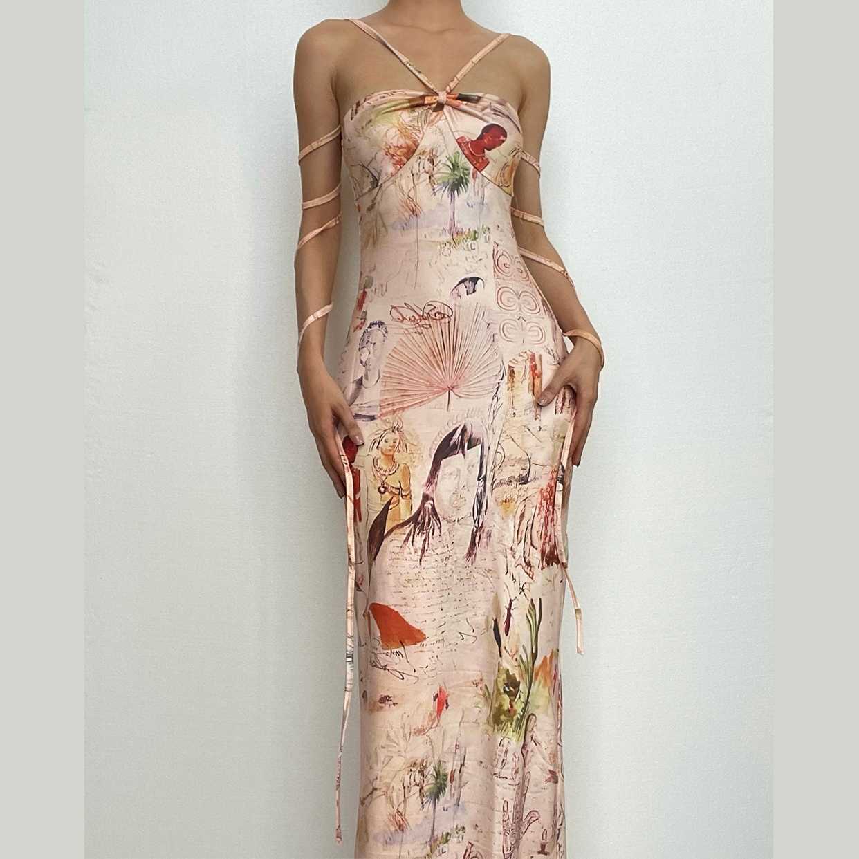 Halter print wrap ruched maxi dress