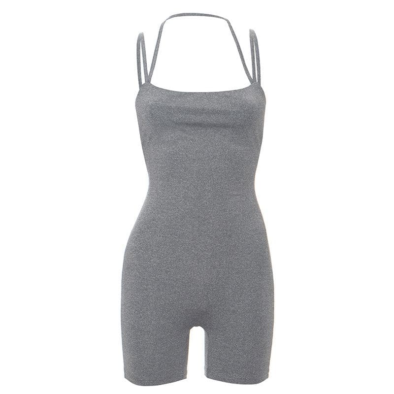 Halter solid sleeveless backless square neck romper