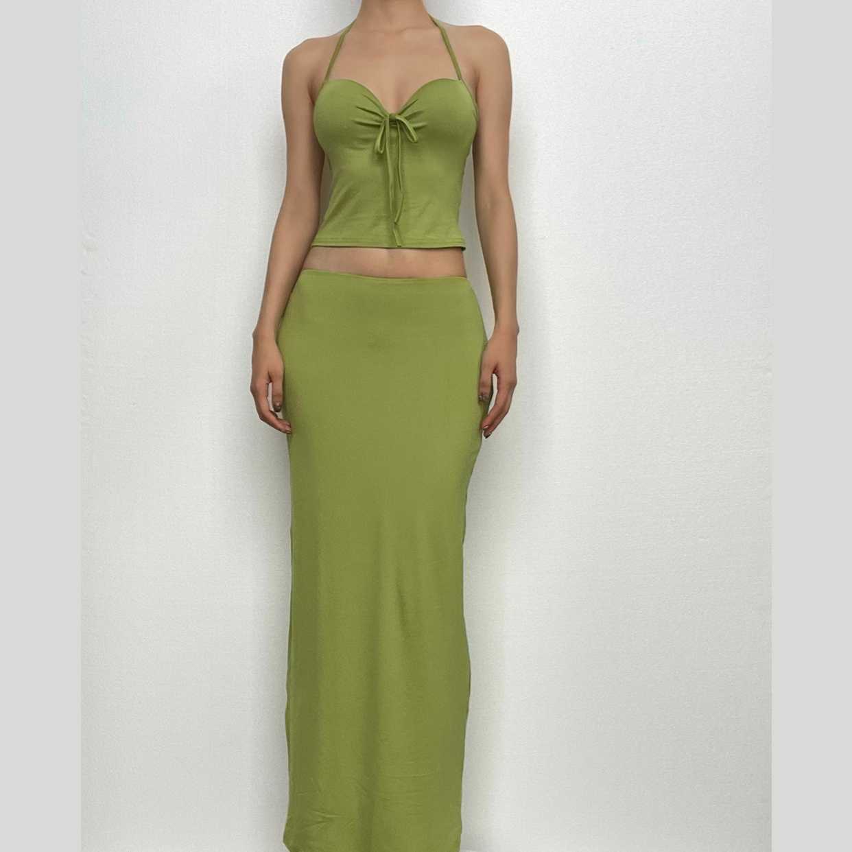 Halter sweetheart neck backless padded solid maxi skirt set
