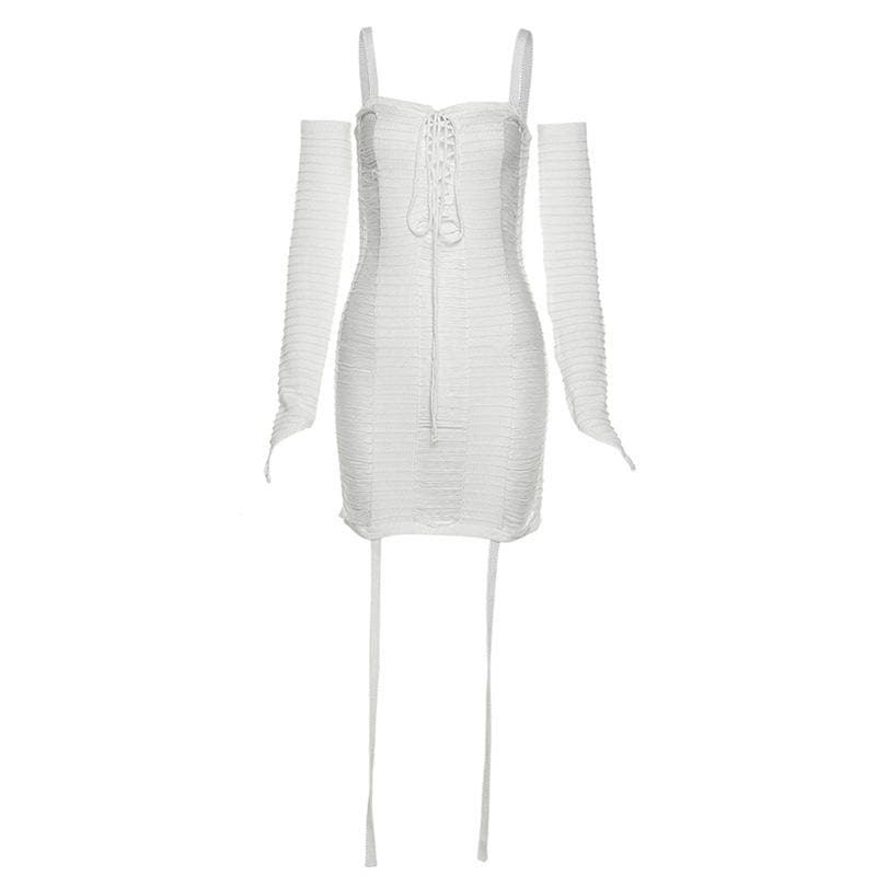 Hollow out crochet solid gloves backless gloves cami dress