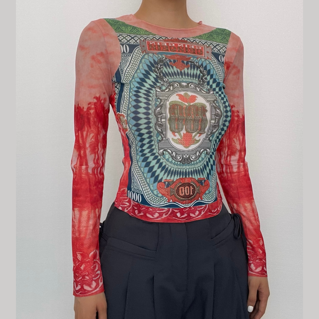 PRE ORDER - Long sleeve crewneck contrast abstract mesh top