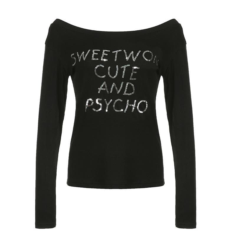 Long sleeve glitter off shoulder solid top