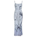 This aesthetic maxi dress features a striking mermaid skeleton print. spaghetti straps. and a body-hugging fit
