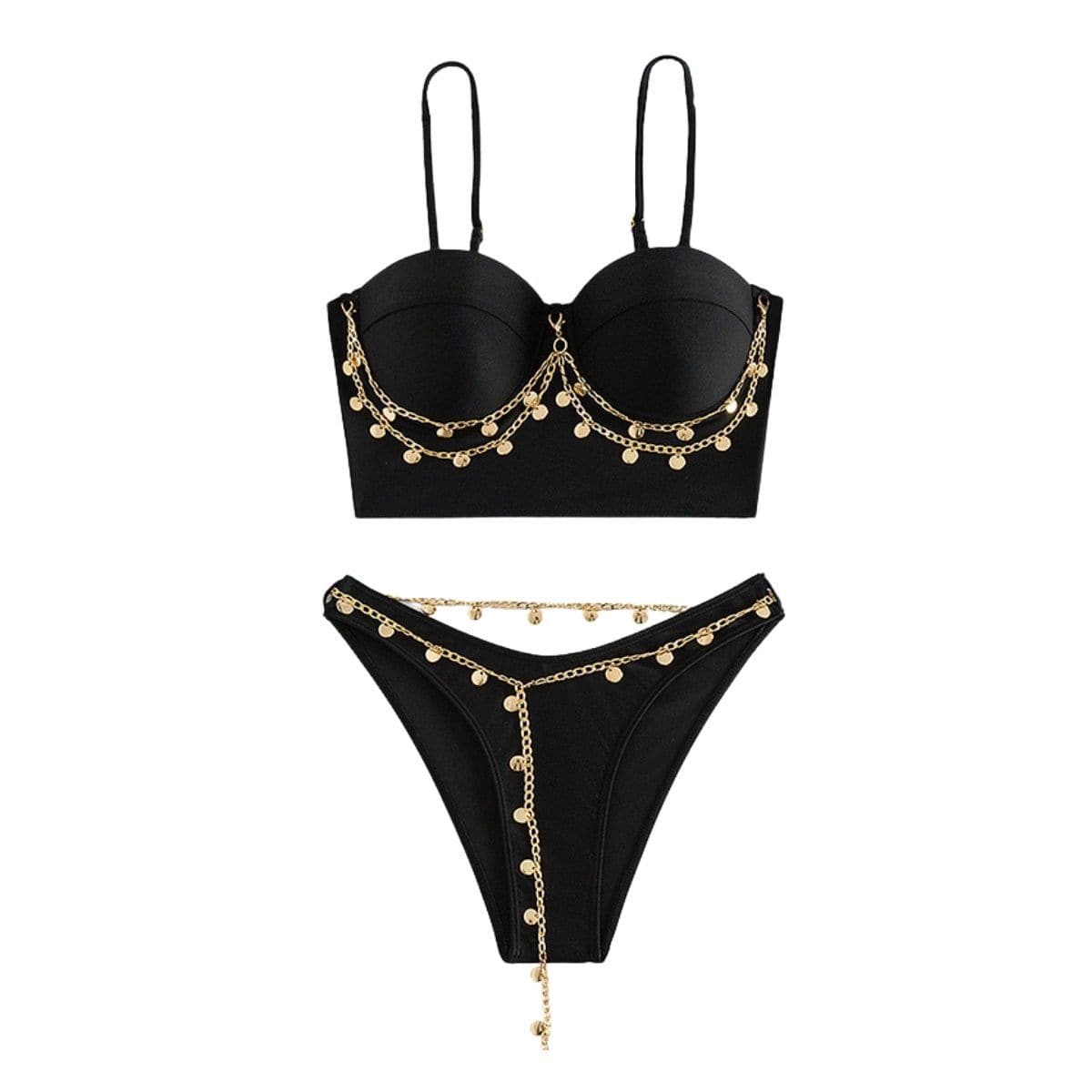 Metal chain padded sweetheart neck cami bikini swimwear