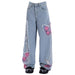 Look your best in these Y2K Pink Butterfly Jeans! Featuring buterfly print. a mid-rise fit. and wide legs. you'll be bringing the early 2000s back in style