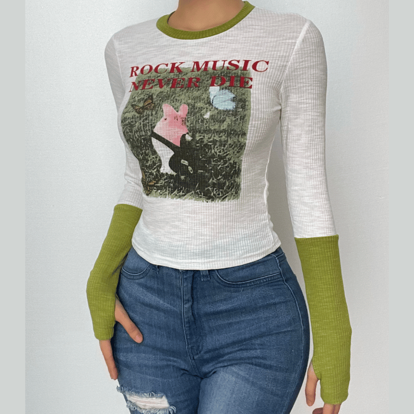 Ribbed contrast abstract gloves patchwork long sleeve top