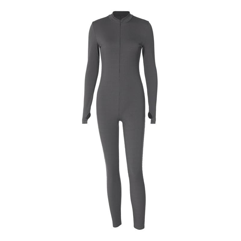 Ribbed gloves solid long sleeve zip-up jumpsuit