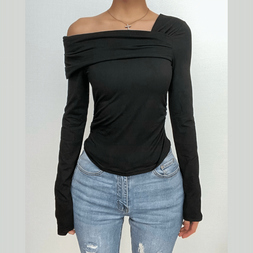 Ruched long sleeve off shoulder solid irregular top