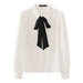 This versatile shirt features a stylish ruffled bow tie neck. adding a touch of sophistication to any outfit.