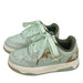These cute sage green sneakers have a vegan leather upper with an aesthetic jelly star design. a low ankle rise and a lace up in front /p>