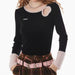 This cute black sweater features cozy faux fur trim on the neckline and cuffs and a heart-shaped cut-out detail