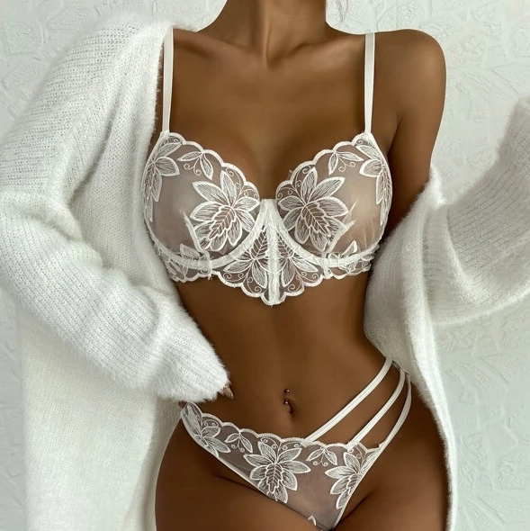 • This underwire lingerie with delicate floral embroidery can enhance femininity and outline your sexy breast lines.