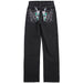 Add fuel to the fire with these legendary hi rise jeans that have a sikk embroidered skeleton graphic. wide legs . and a buttoned zip closure