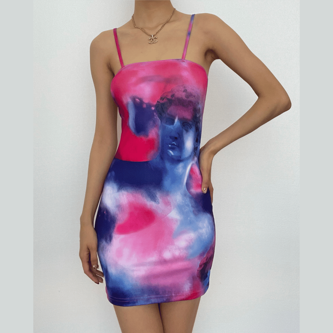 Sleeveless contrast abstract backless mini dress