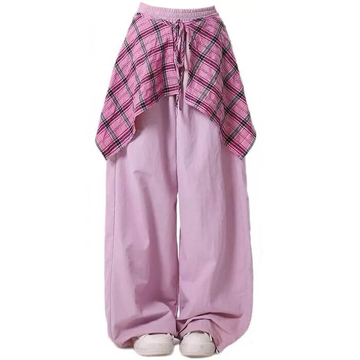 This Soft Girl pants features a wide-leg design with a detachable plaid overlay. creating a layered look with a relaxed. comfortable fit