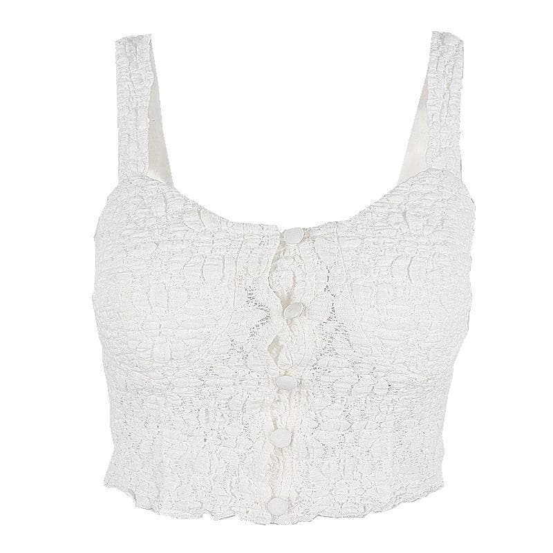 Solid button round neck smocked textured cami top