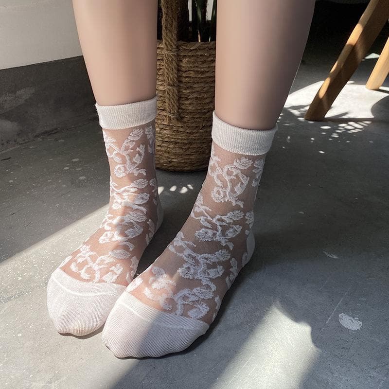 Solid flower pattern mesh long socks