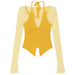 This yellow layered top features a ribbed knit design with a halter tank and button-up front